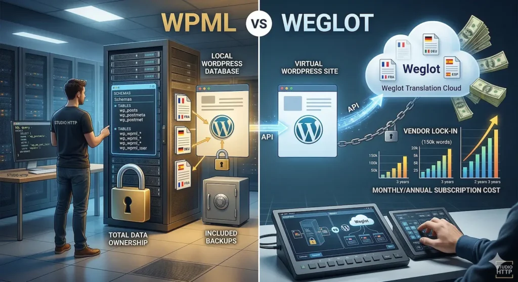 Cependant, chez Studio HTTP, notre position est ferme : WPML reste la solution la plus sûre et la plus saine pour les sites professionnels. C’est le seul choix qui garantit la propriété réelle de vos données, la fiabilité totale de vos sauvegardes et des coûts qui restent sous contrôle sur le long terme.